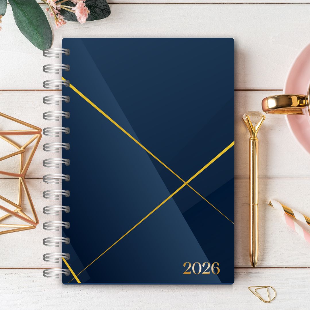 A Agenda 2026 Azul sofisticado é ideal para quem deseja planejar o ano com eficiência e estilo. Com tamanho de 16 cm x 22 cm e encadernação duplo wire-o, oferece resistência, durabilidade e conforto na escrita. Seu interior é completo: dados pessoais, calendário 2026, contatos, senhas e logins, anotações, planejamento mensal e visão diária com 1 dia por página, horários e espaço para lembretes e inspirações.